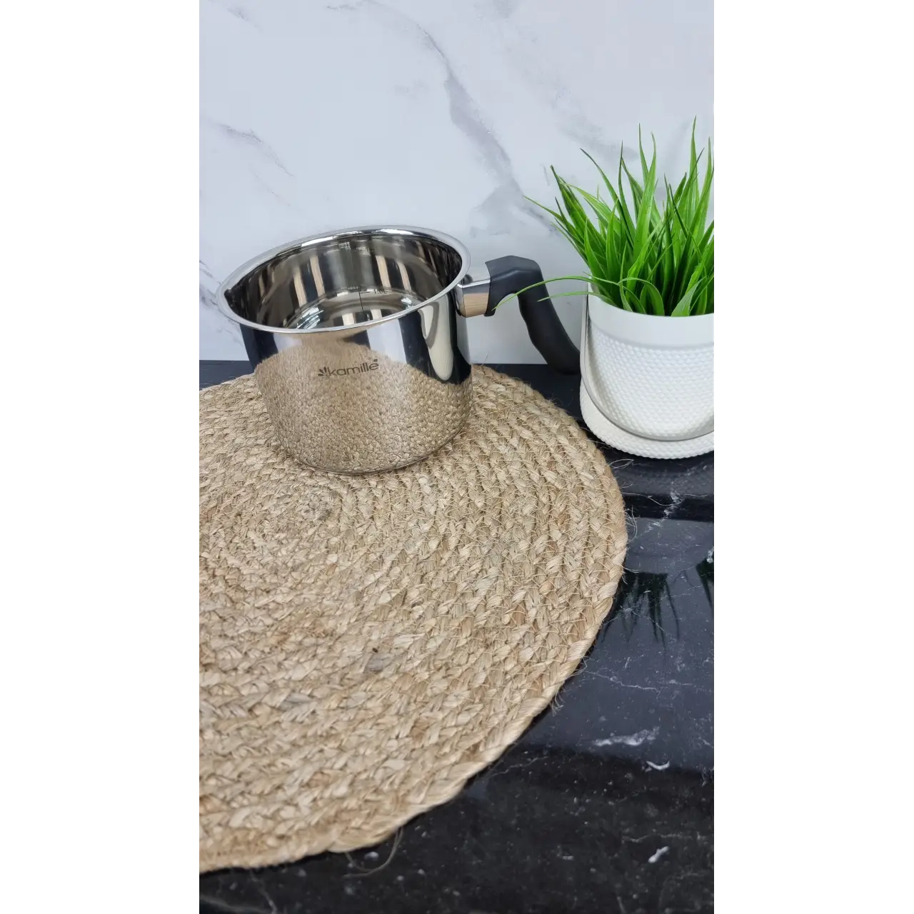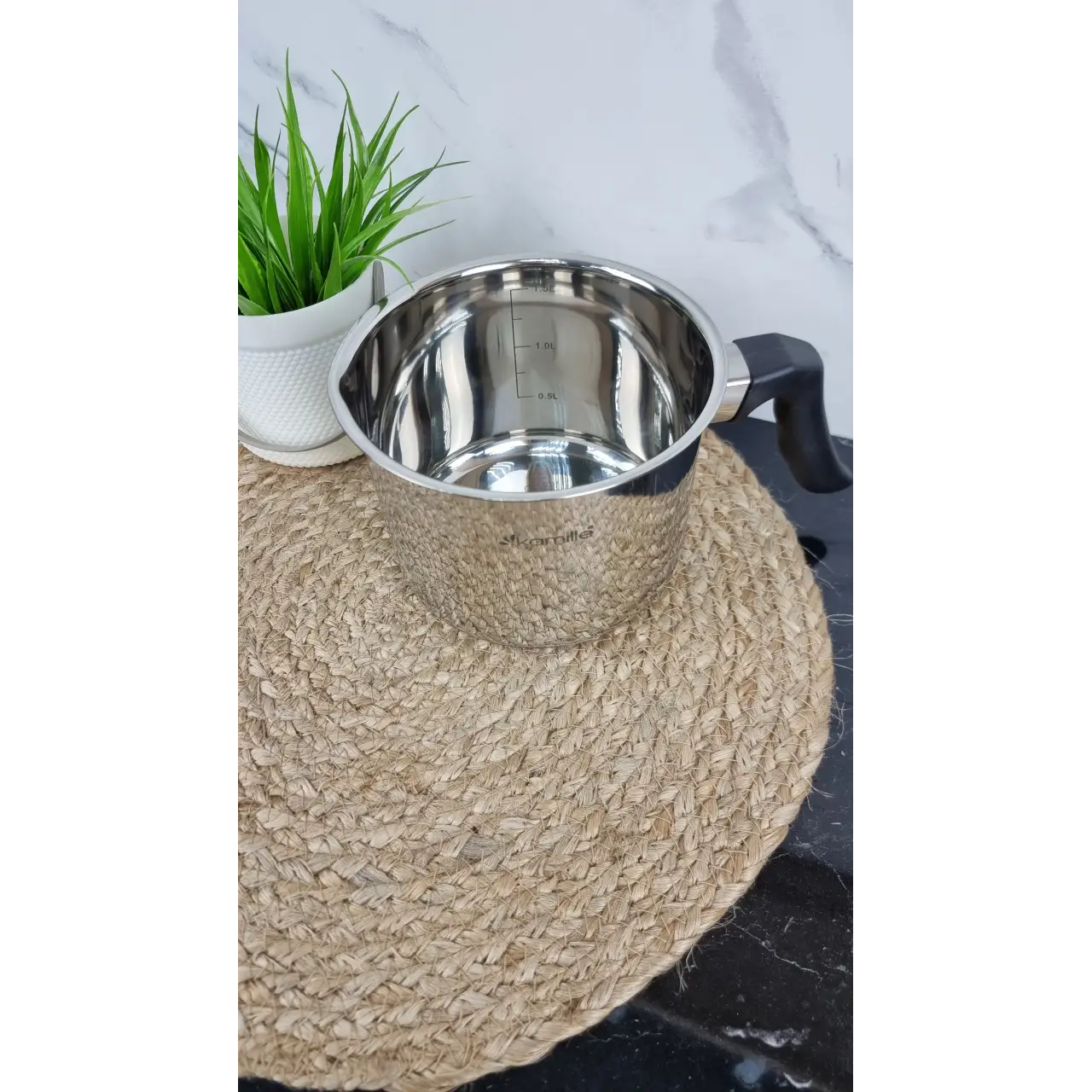 Капсульное дно обеспечивает равномерный нагрев молока, а удобная бакелитовая ручка не нагревается и гарантирует комфорт при использовании.