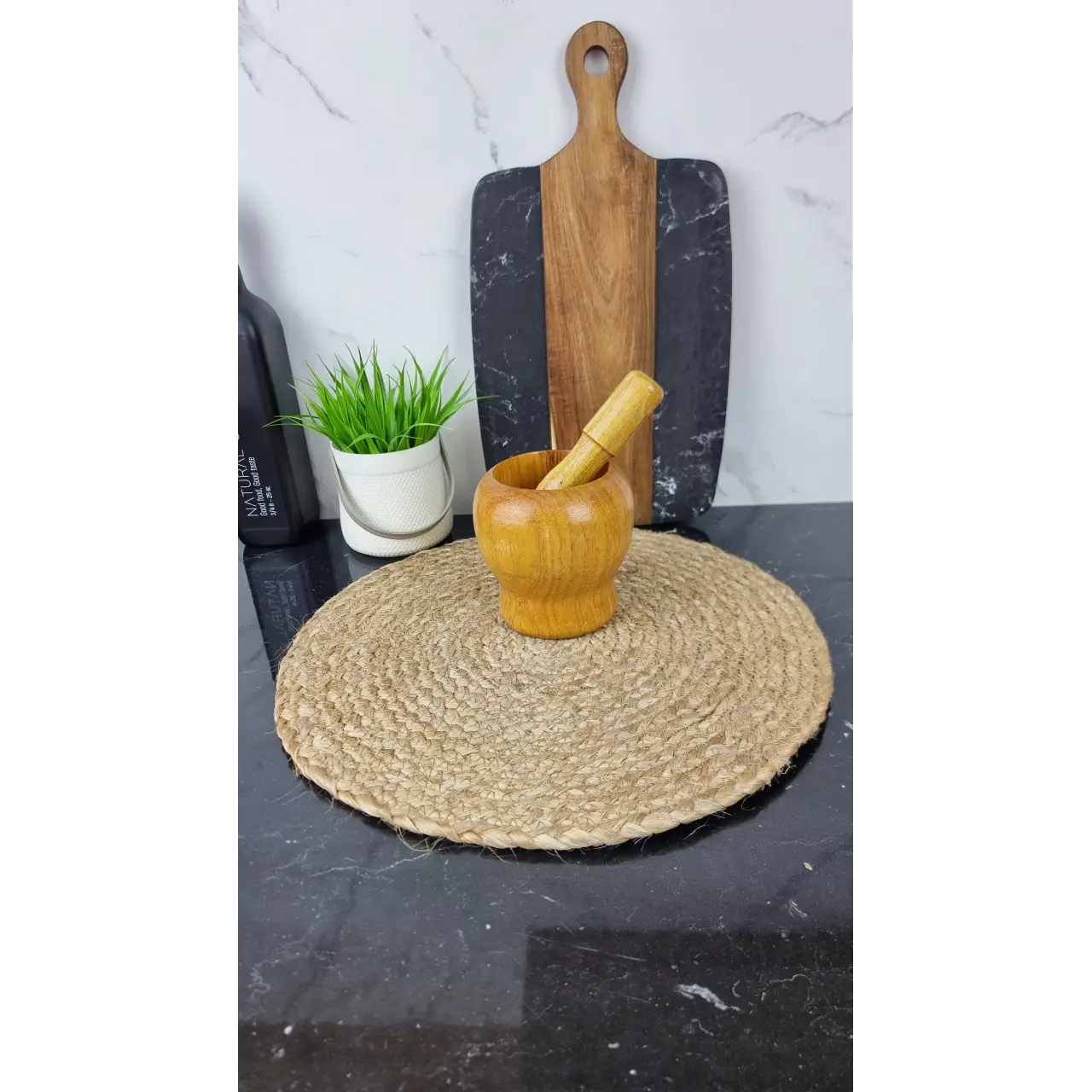 Бамбук является прочным и экологически чистым материалом, обеспечивающим долговечность изделия. Эргономичная форма ступки позволяет удобно держать её в руке во время приготовления блюд.