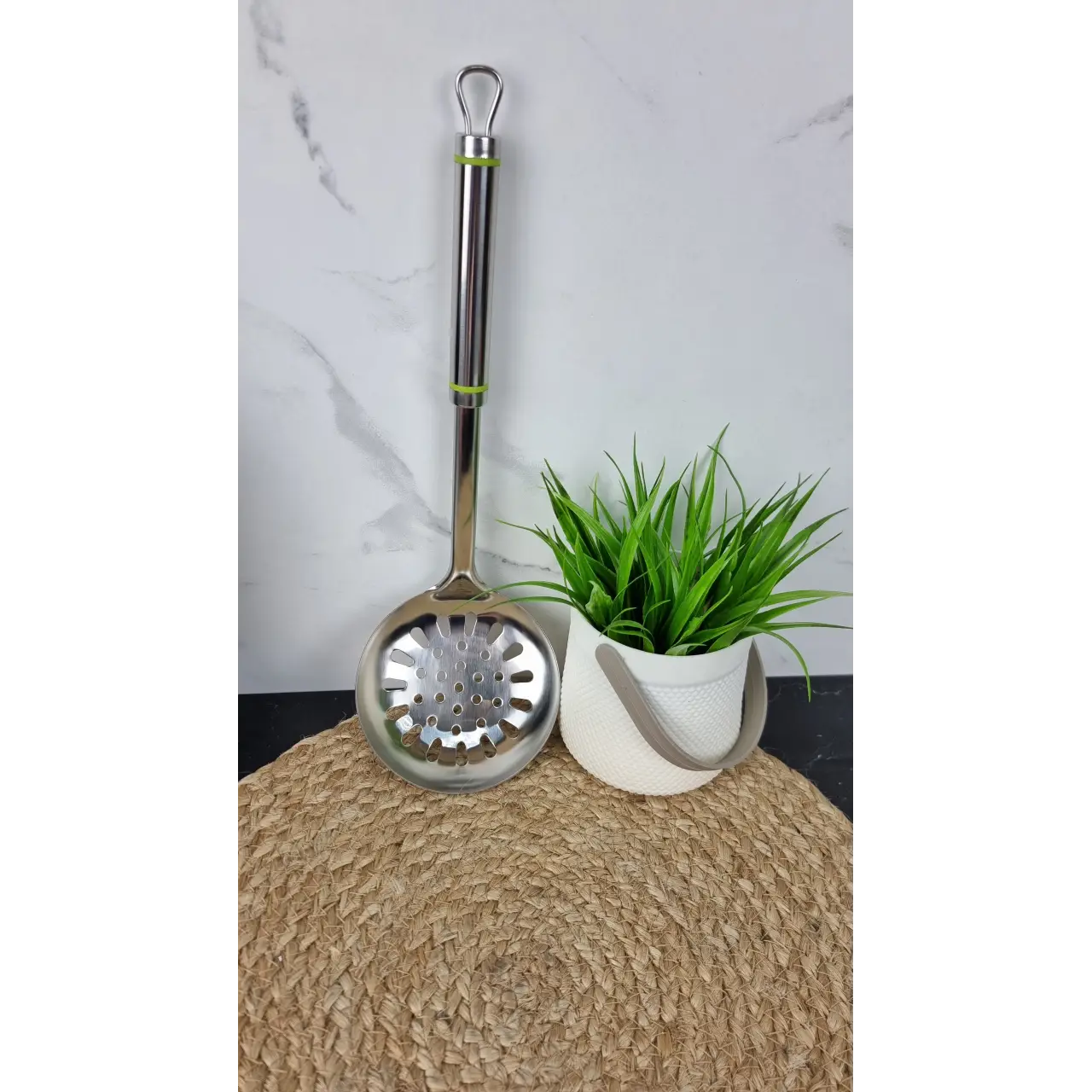 Шумовка BN-255 — это идеальный инструмент для удобного и быстрого извлечения продуктов из горячих жидкостей, таких как супы, вареники или картофельное пюре. Изготовленная из высококачественной нержавеющей стали, она обеспечивает прочность и долговечность, устойчива к коррозии и легко чистится. Эргономичная ручка добавляет комфорта при использовании, а специальная форма шумовки позволяет эффективно отделять пищу от жидкости.
