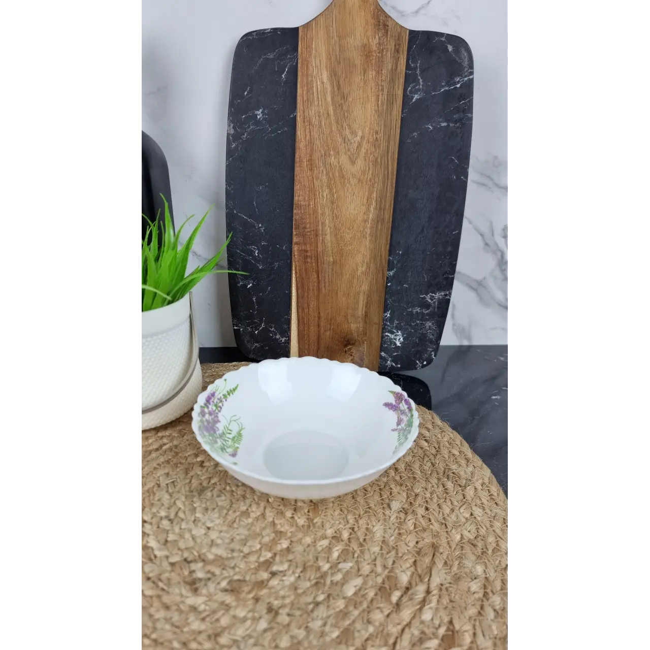 Салатник «Лаванда» 6808/S, размер №6 (≈15,2 см), изготовлен из стеклокерамики с волнистым краем — стильная и практичная посуда для подачи салатов, закусок, фруктов или десертов. Прочная стеклокерамика устойчива к царапинам и высоким температурам. Волнистый край придаёт салатнику элегантность, а белый цвет делает его универсальным для любой сервировки и легко сочетается с другой посудой.