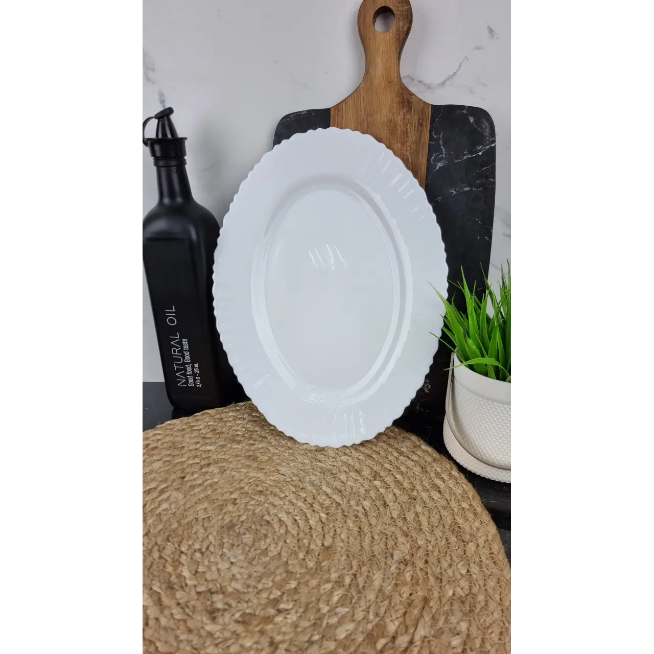 Овальная тарелка WHITE O441012CE, размер №12 (≈30,5 см), из стеклокерамики с волнистым краем — стильная и практичная посуда для подачи вторых блюд, салатов, закусок или десертов. Прочная стеклокерамика устойчива к царапинам и высоким температурам. Волнистый край придаёт сервировке элегантность и утончённость, а прозрачное или белое покрытие позволяет красиво презентовать блюдо.