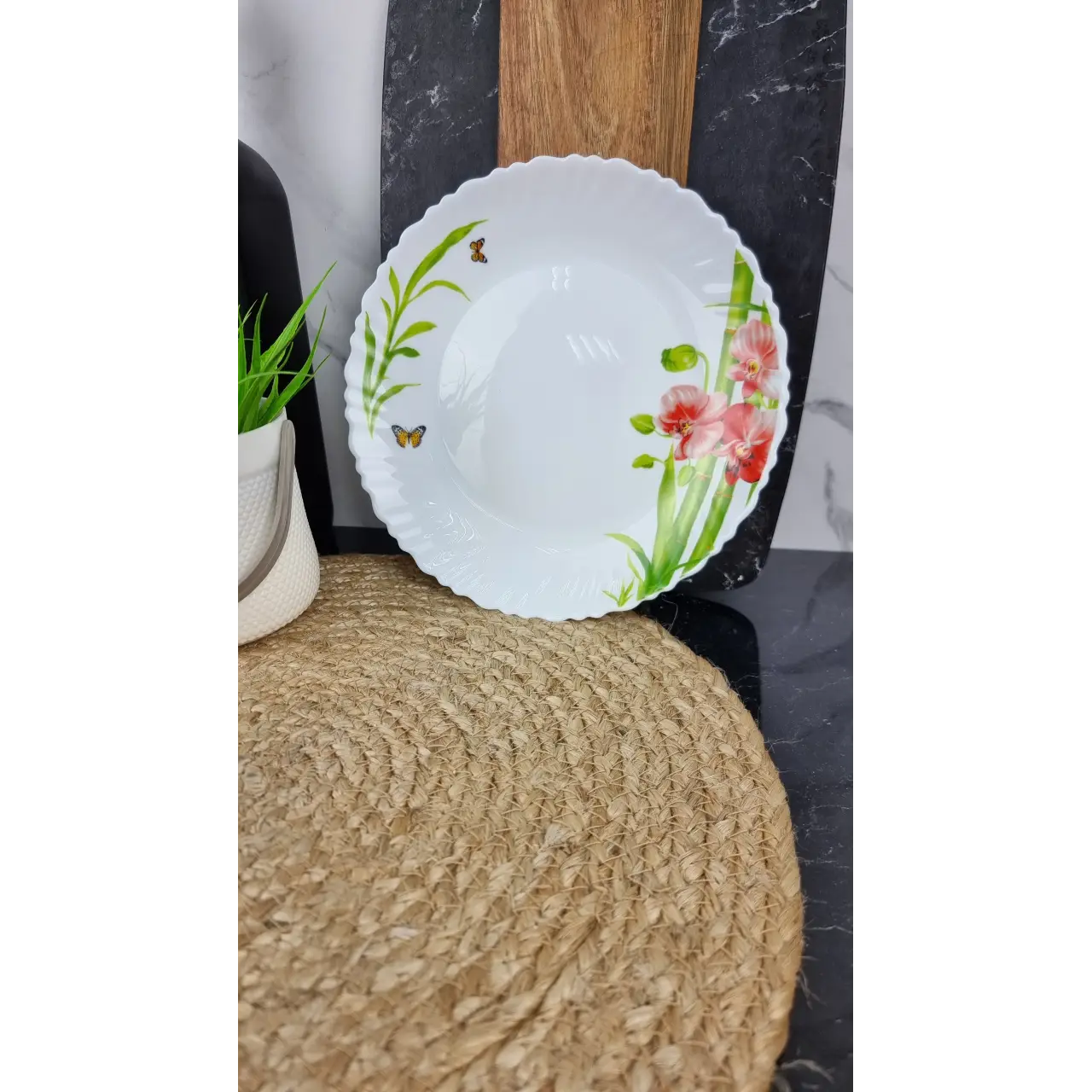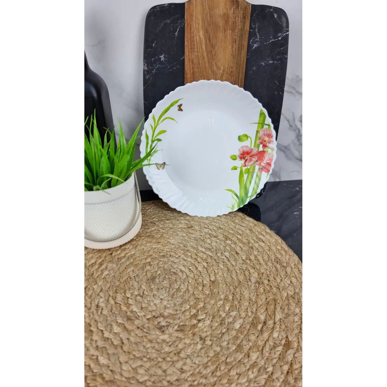 Тарелка мелкая Орхидея №8,5 BB 405 из стеклокерамики диаметром 21 см – практичная и элегантная посуда для подачи первых и вторых блюд, салатов или десертов. Волнообразный край придаёт сервировке изысканность и оригинальность. Стеклокерамика устойчива к царапинам и перепадам температур, легко моется и сохраняет привлекательный вид при ежедневном использовании.