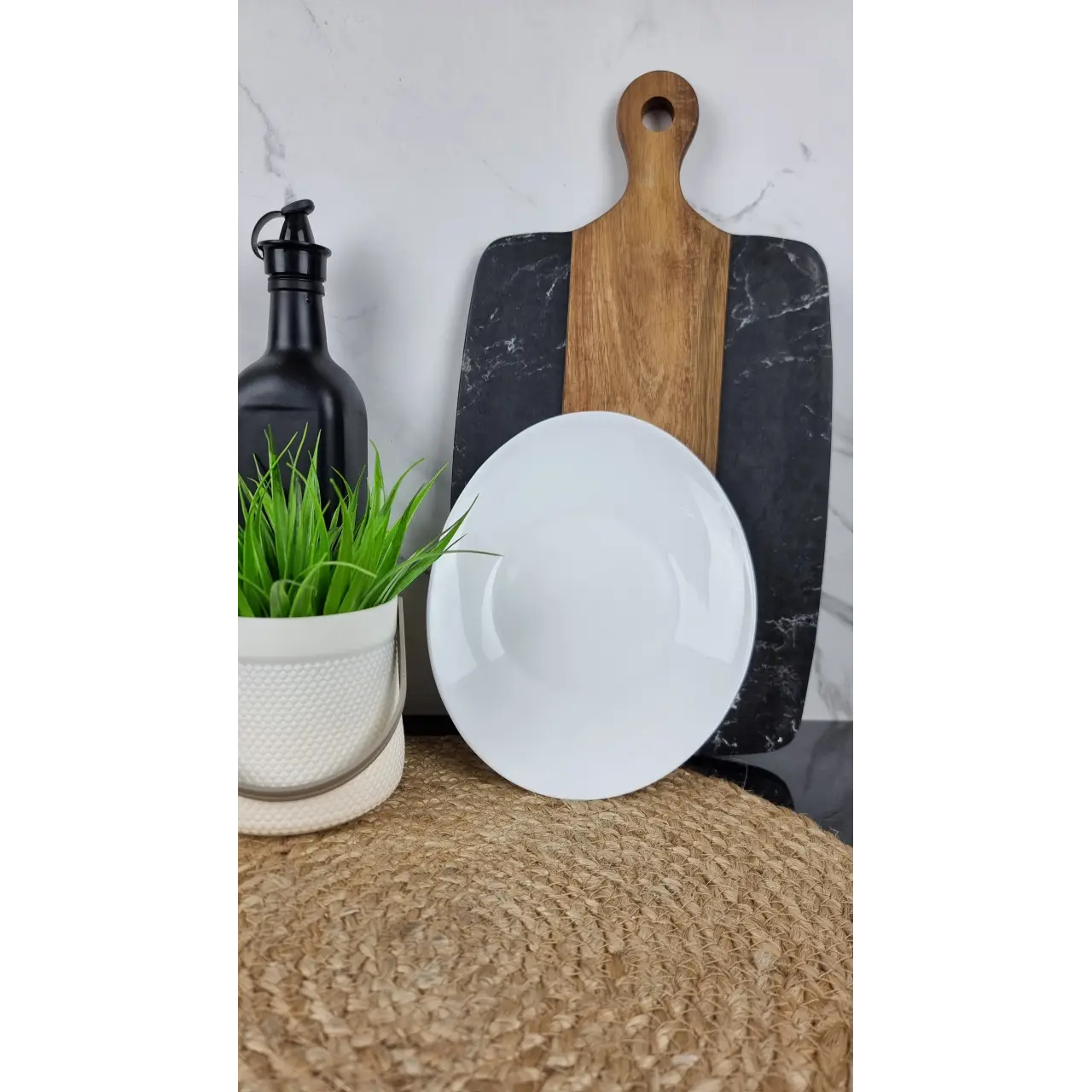 Мелкая овальная тарелка WHITE LCP85, размер №8,5 (≈21,6 см), из стеклокерамики — практичная и стильная посуда для подачи вторых блюд, гарниров или салатов. Прочная стеклокерамика устойчива к царапинам и высоким температурам. Овальная форма и прозрачное или белое покрытие позволяют красиво презентовать блюдо, а размер тарелки делает её универсальной для ежедневного использования или праздничного стола.