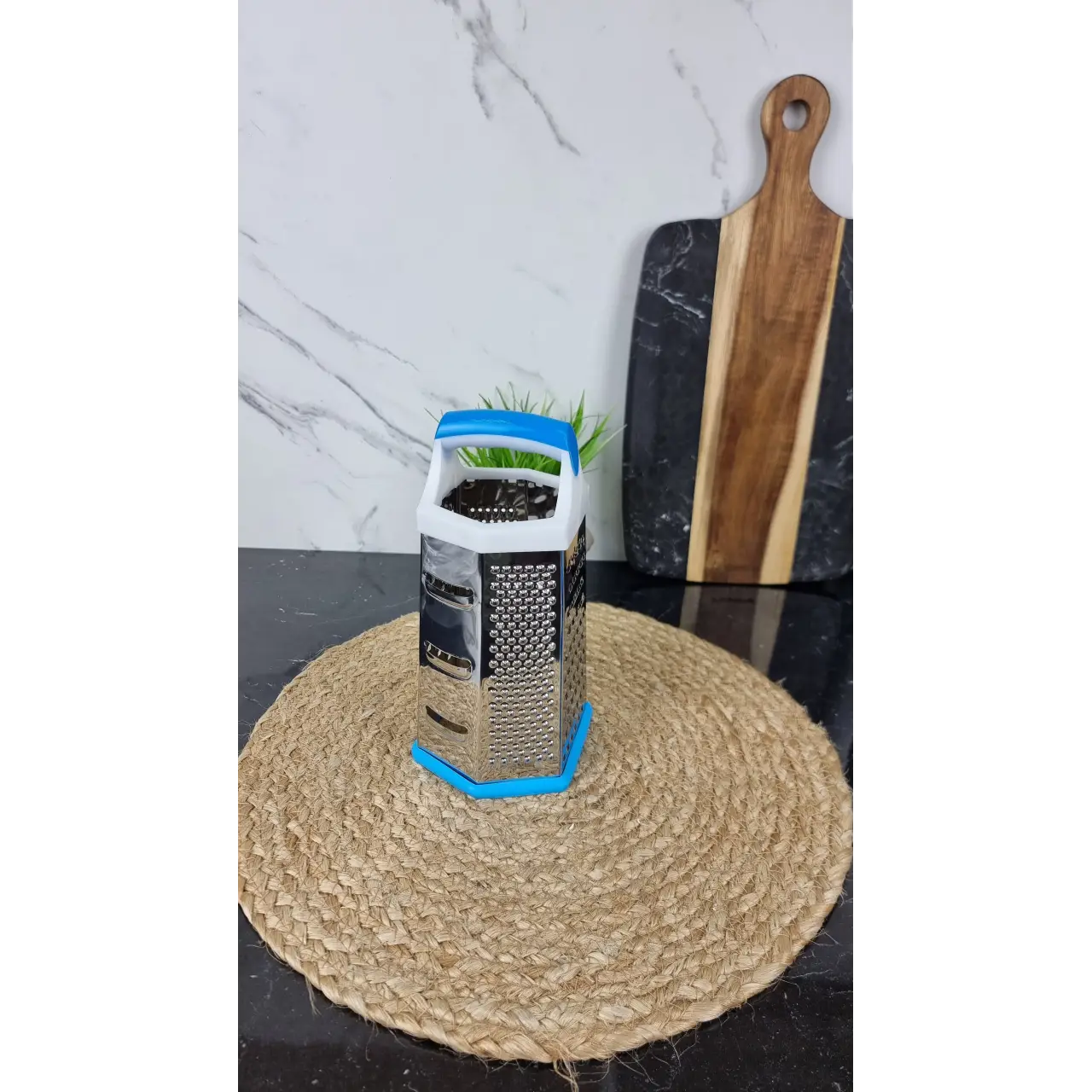 Шесть рабочих граней с различными типами лезвий позволяют быстро натирать, шинковать и измельчать овощи, фрукты, сыр и другие ингредиенты. Удобная ручка обеспечивает надежный захват и комфорт в использовании. Оптимальный размер 9″ делает тёрку практичной для ежедневного применения дома и на профессиональной кухне.