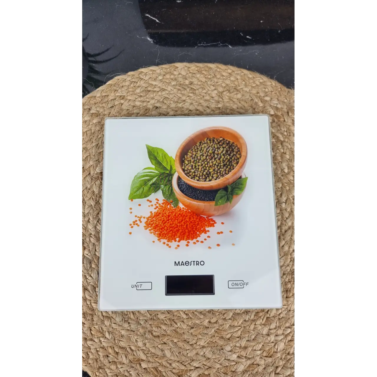 Компактный и тонкий дизайн с прочной платформой из стекла и пластика гармонично вписывается в интерьер любой кухни, а питание от двух батареек AAA обеспечивает длительную работу без лишних проводов.