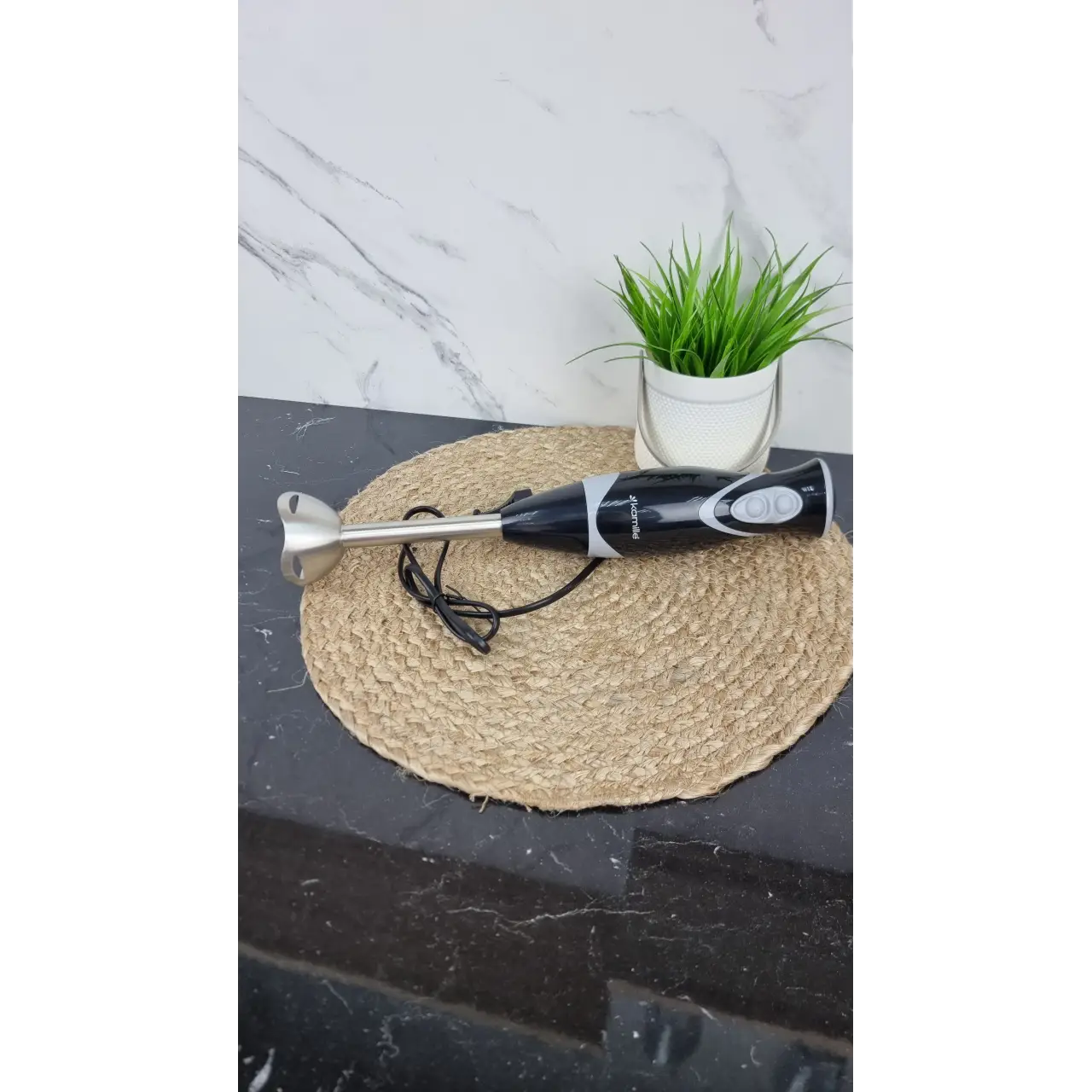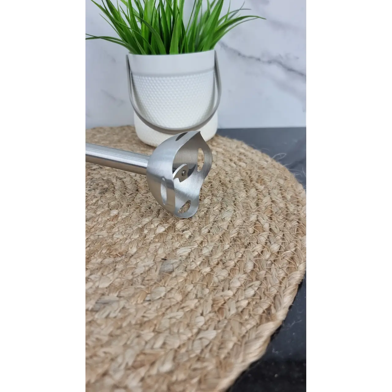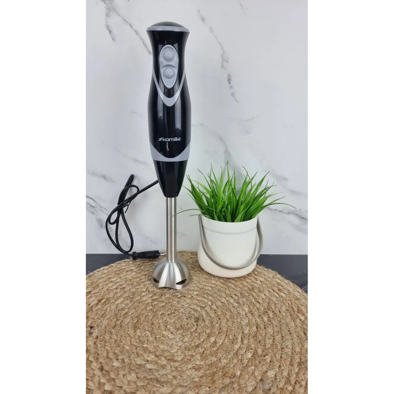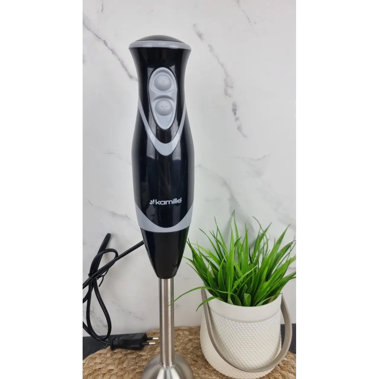 Ручний блендер Kamille KM-6755 — це компактний та надійний кухонний помічник, який значно спрощує процес приготування страв. Модель оснащена міцними насадками з нержавіючої сталі, стійкої до вологи та фруктових кислот, що гарантує довгий термін служби та стабільну ефективність.