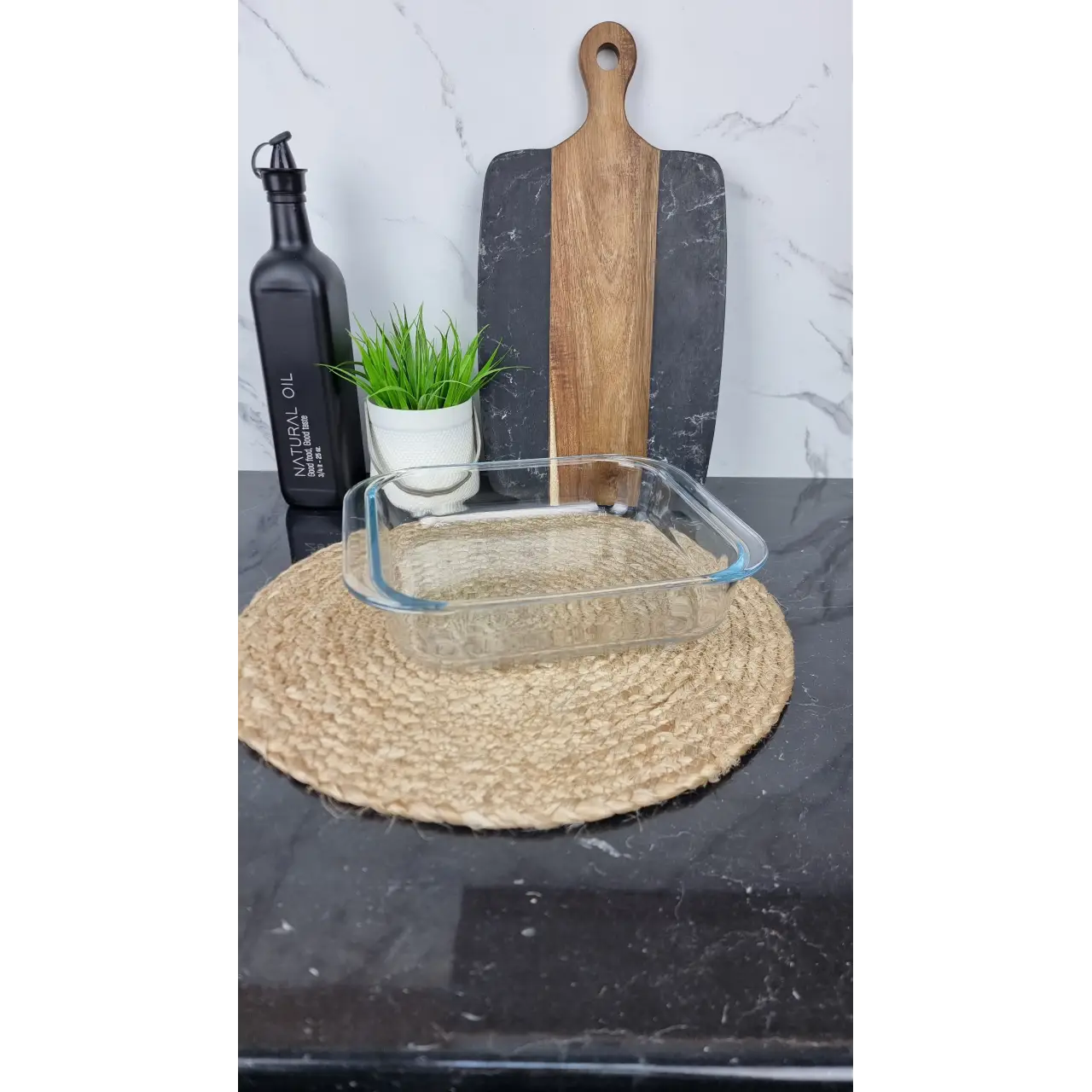 Це квадратне деко об'ємом 2,3 літра виготовлене з жароміцного скла, що дозволяє використовувати його для приготування страв як у духовці, так і на плиті. Його квадратна форма ідеально підходить для запікання пирогів, запіканок або страв з овочів. Прозора конструкція дає можливість спостерігати за процесом приготування без необхідності відкривати кришку, що робить використання деко максимально зручним. Легке в догляді, воно також відрізняється стильним виглядом.