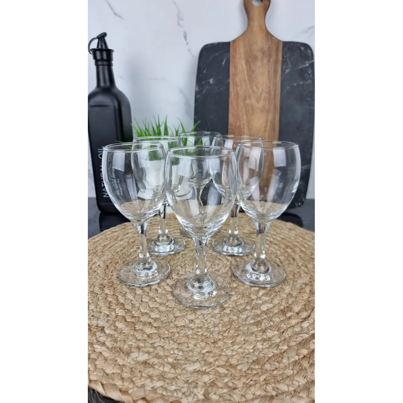 Келихи виготовлені з якісного прозорого скла, яке відрізняється міцністю, довговічністю та стійкістю до подряпин. Завдяки витонченій формі вони зручно лежать у руці та красиво підкреслюють колір і прозорість напою.
