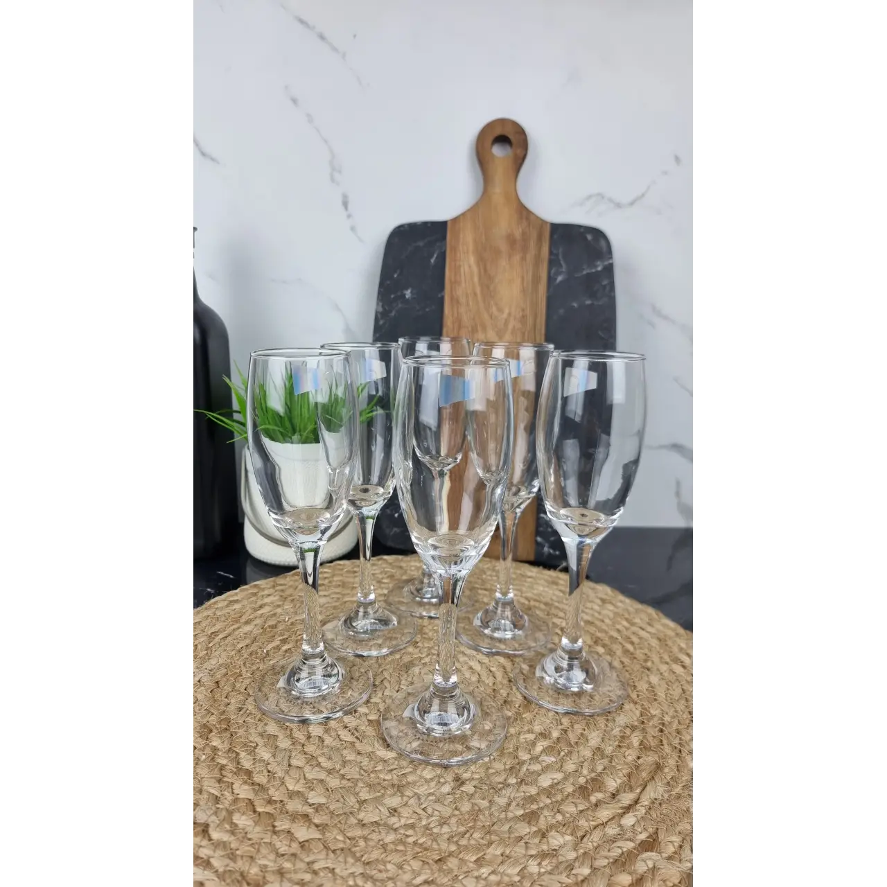 Келихи виготовлені з прозорого якісного скла, що відзначається міцністю, довговічністю та стійкістю до подряпин. Витончена форма підкреслює колір напою та забезпечує зручність під час використання.