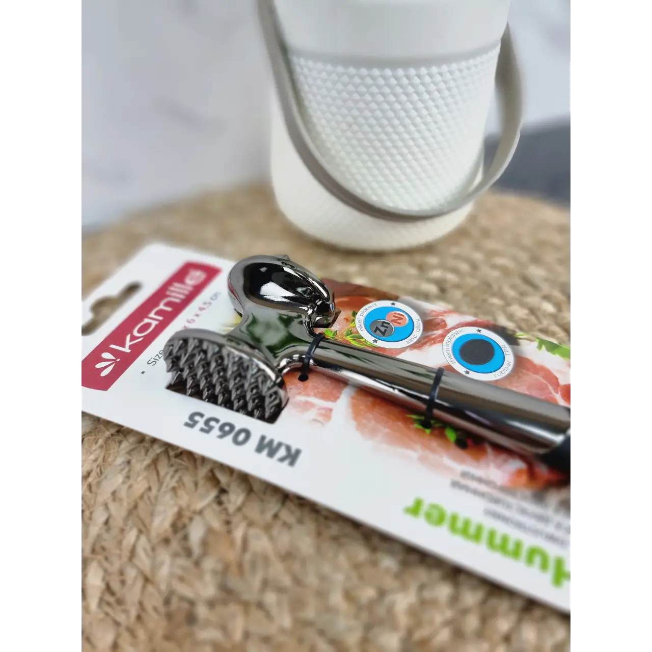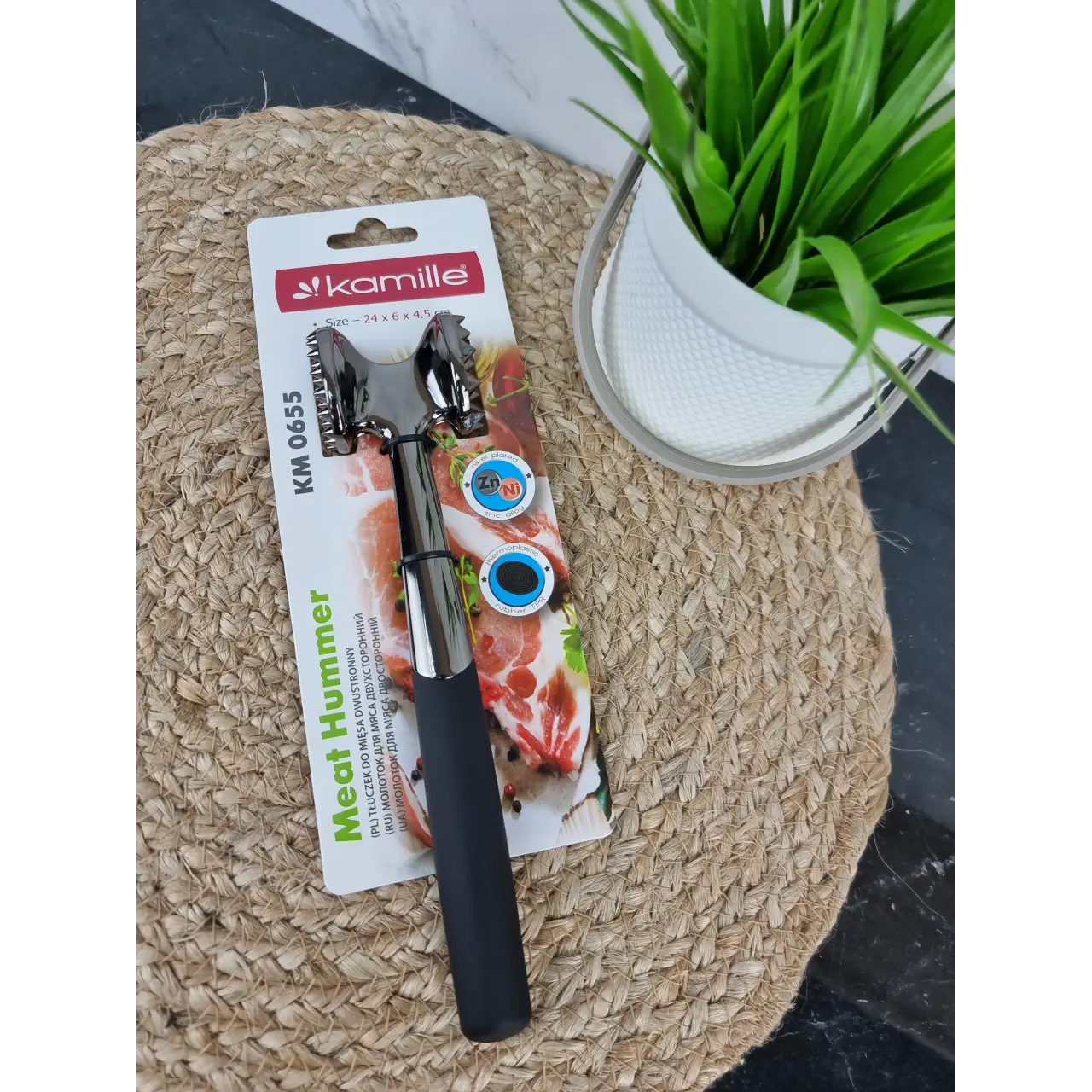Молоток для відбивання м’яса Kamille — це практичний та надійний інструмент, який стане незамінним помічником на кухні. З його допомогою ви зможете легко й швидко підготувати м’ясо для приготування улюблених страв, а сучасний дизайн чудово доповнить інтер’єр кухні.