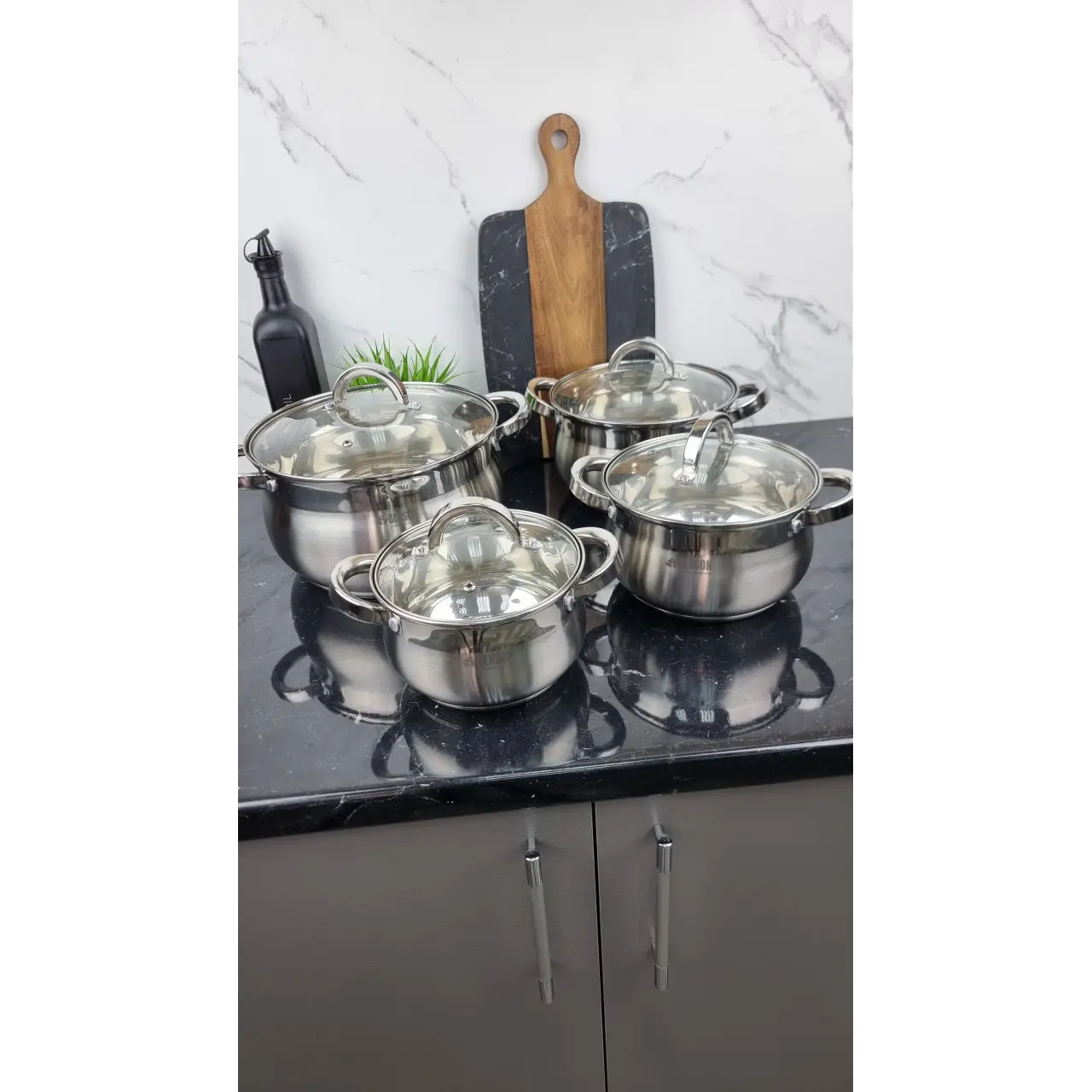 Набір каструль 8 пр. (2,1 л, 2,9 л, 3,9 л, 6,5 л) нержавіюча сталь BN-210