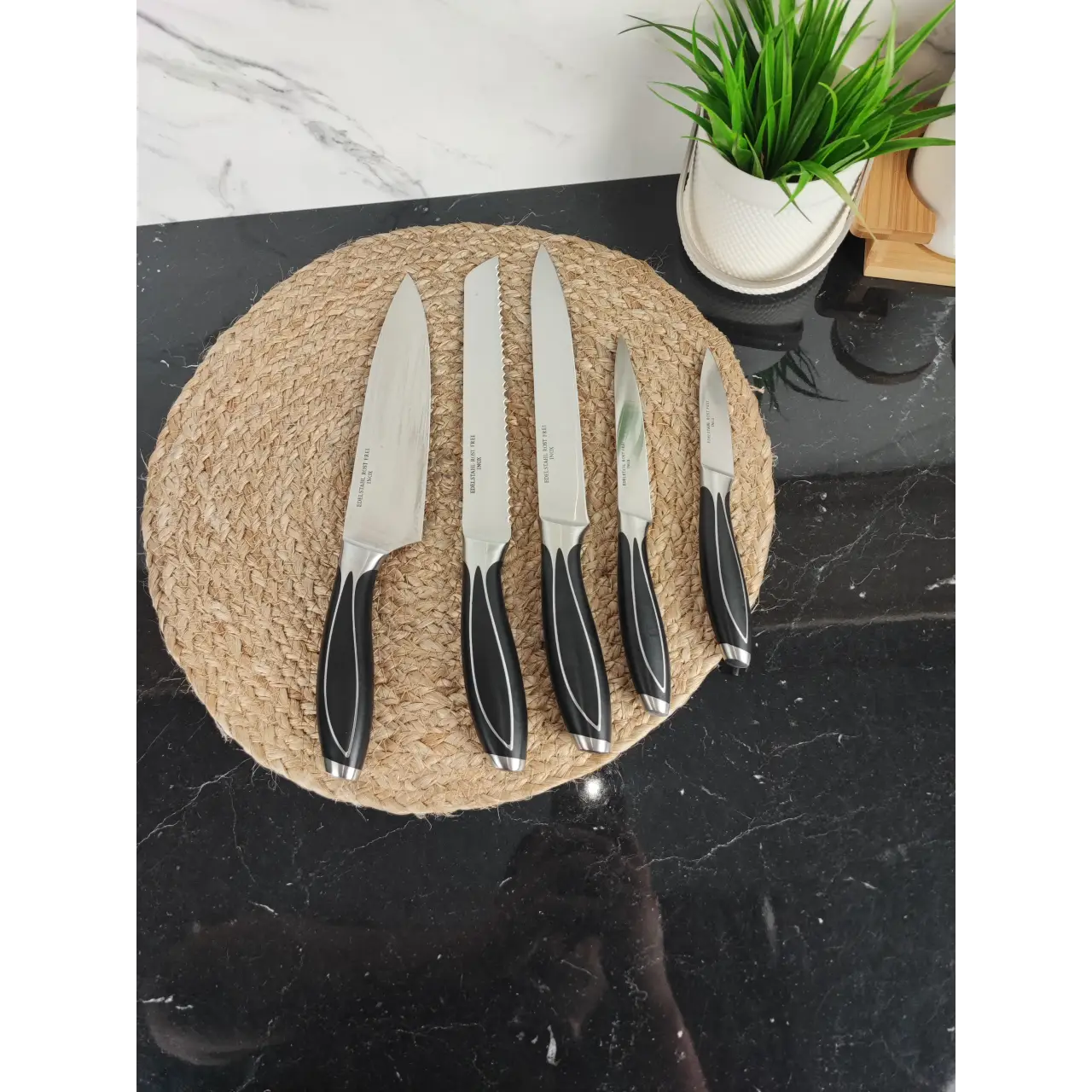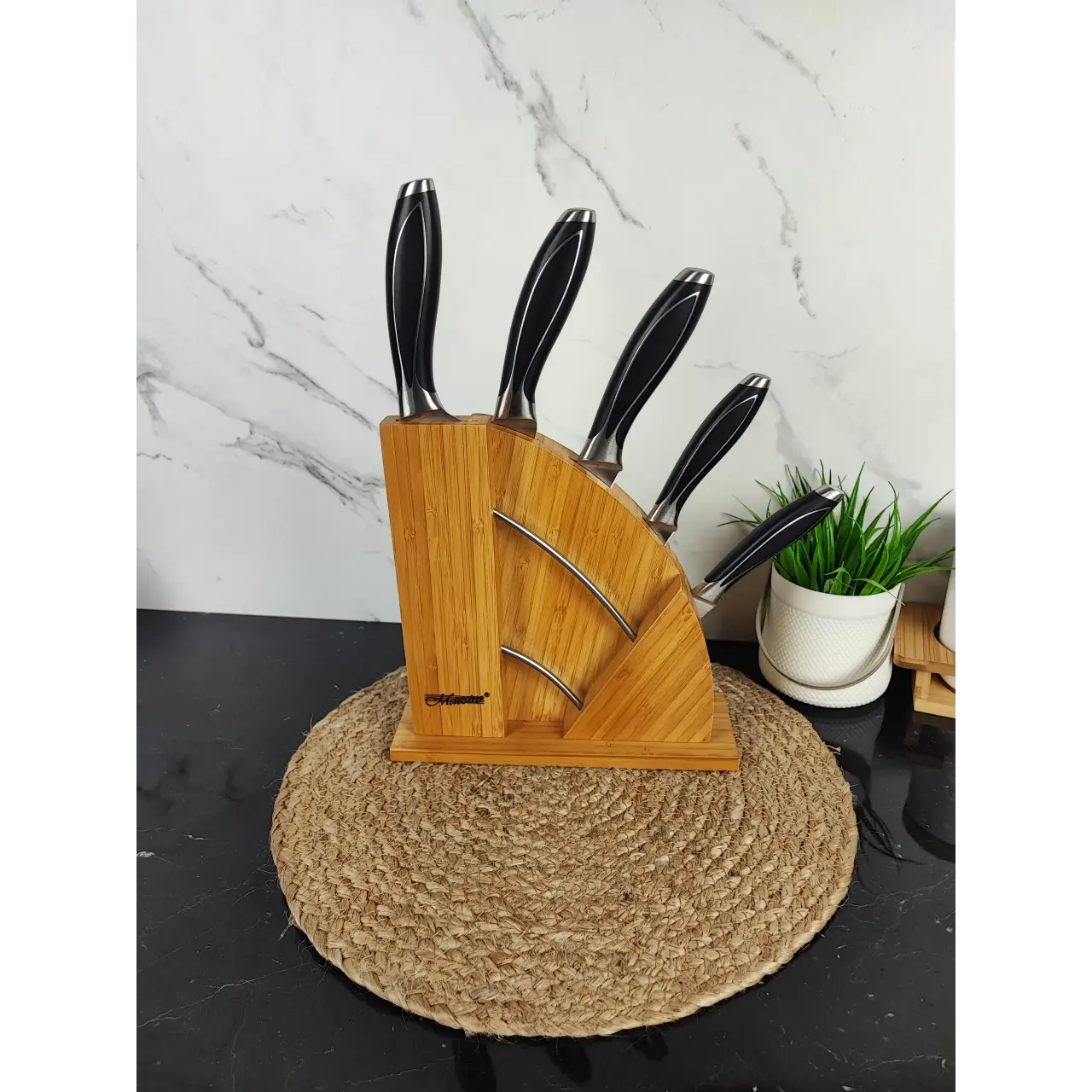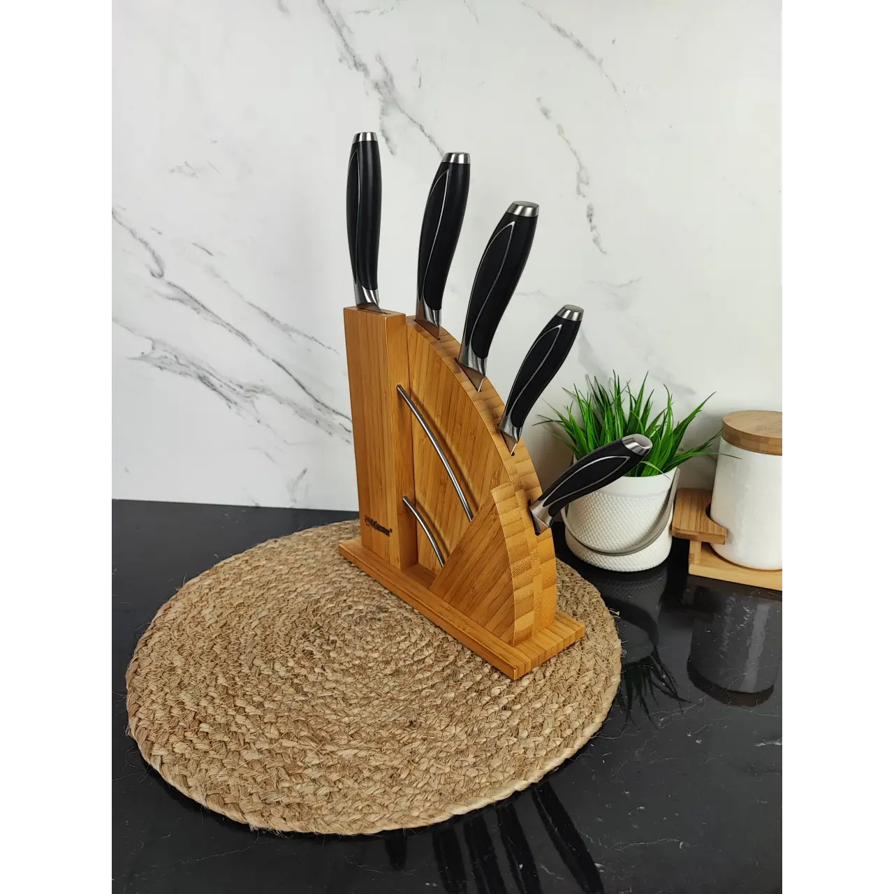 Компактний і зручний набір ножів для щоденного використання. Оптимальний вибір для домашньої кухні — усе необхідне завжди під рукою та акуратно зберігається у дерев’яній колоді.