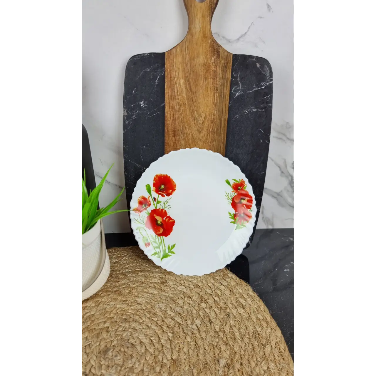 Тарілка мілка «Мак» №7,5 діаметром 19 см виготовлена зі склокераміки та має витончений хвилястий край, що додає сервіруванню легкості й елегантності. Оптимальний розмір робить її зручною для подачі основних страв, закусок, десертів або випічки.