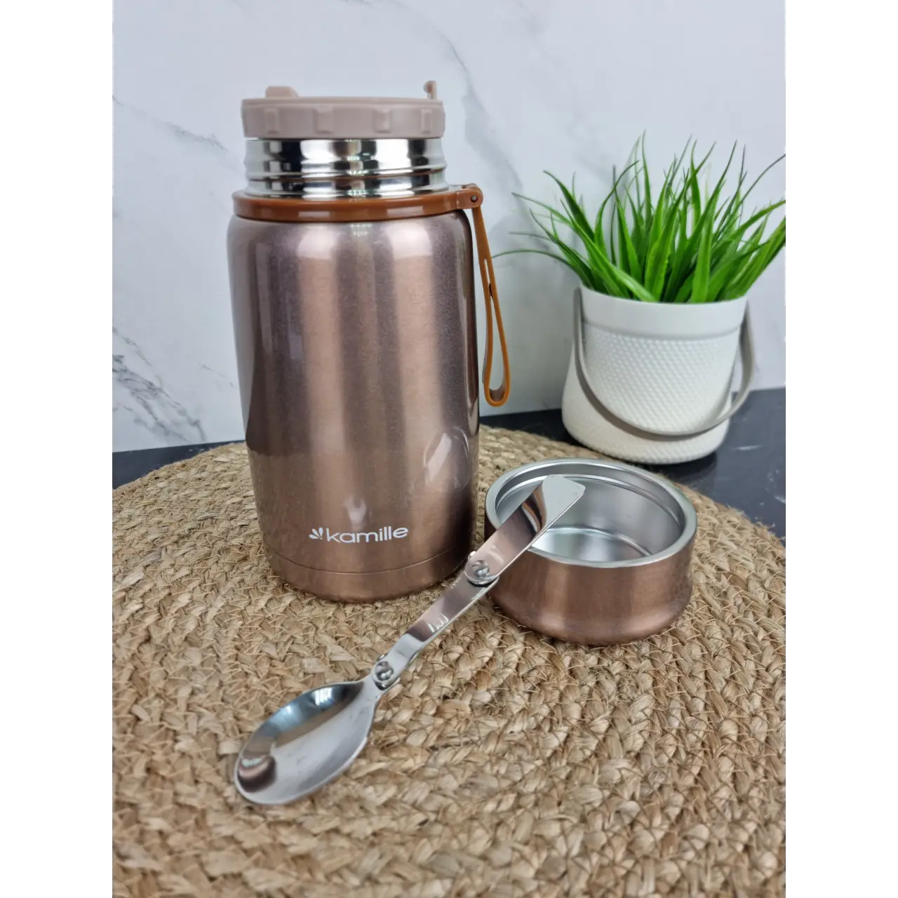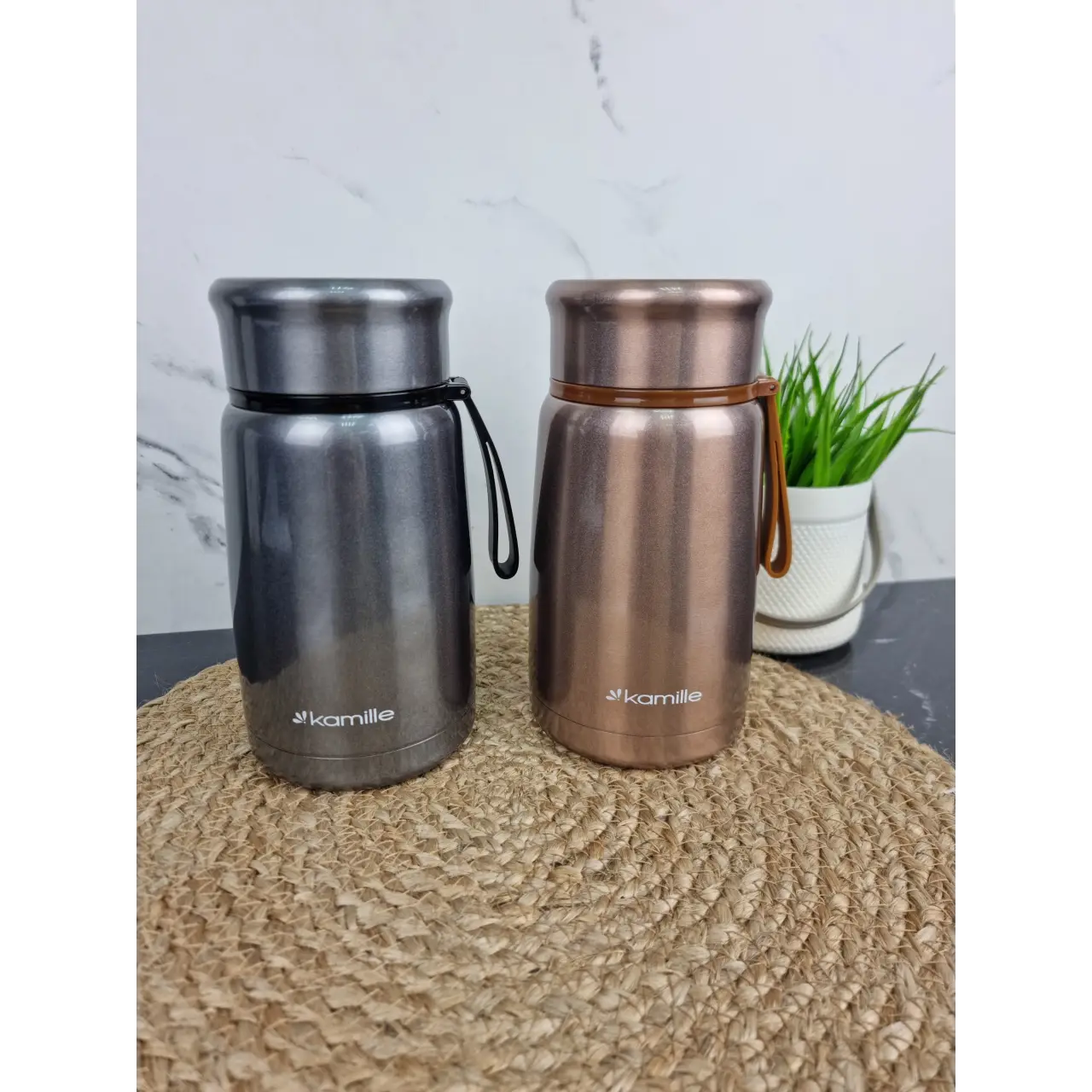 Термос Kamille має високу якість, надійність, компактні розміри та естетичний дизайн. Гаряче залишається гарячим, а холодне - холодним. Такий термос стане незамінним у машині, на відпочинку або в подорожі.