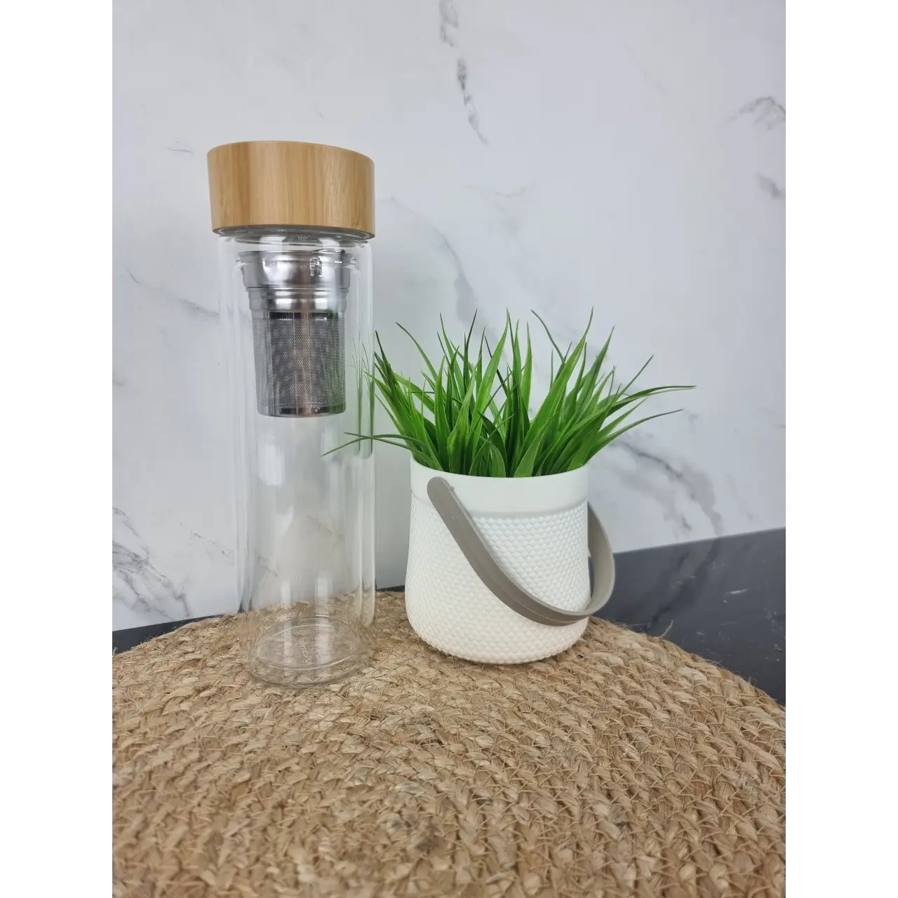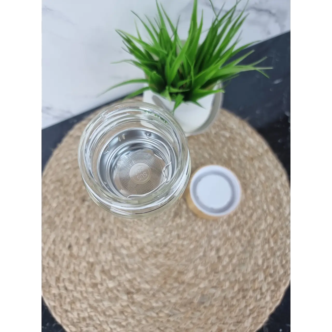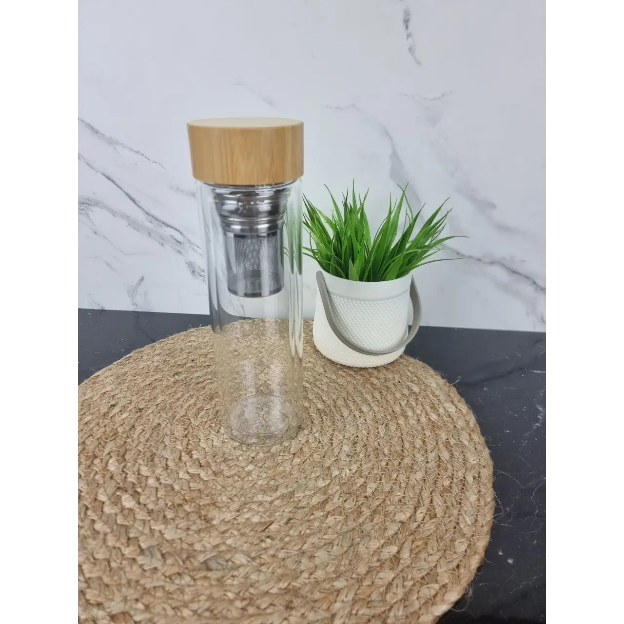 Пляшка із сітечком 450мл кришка бамбук скло 9020