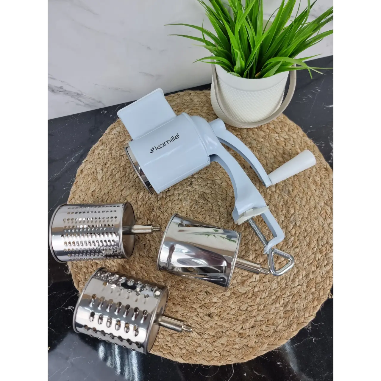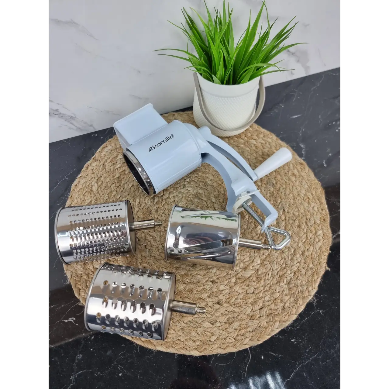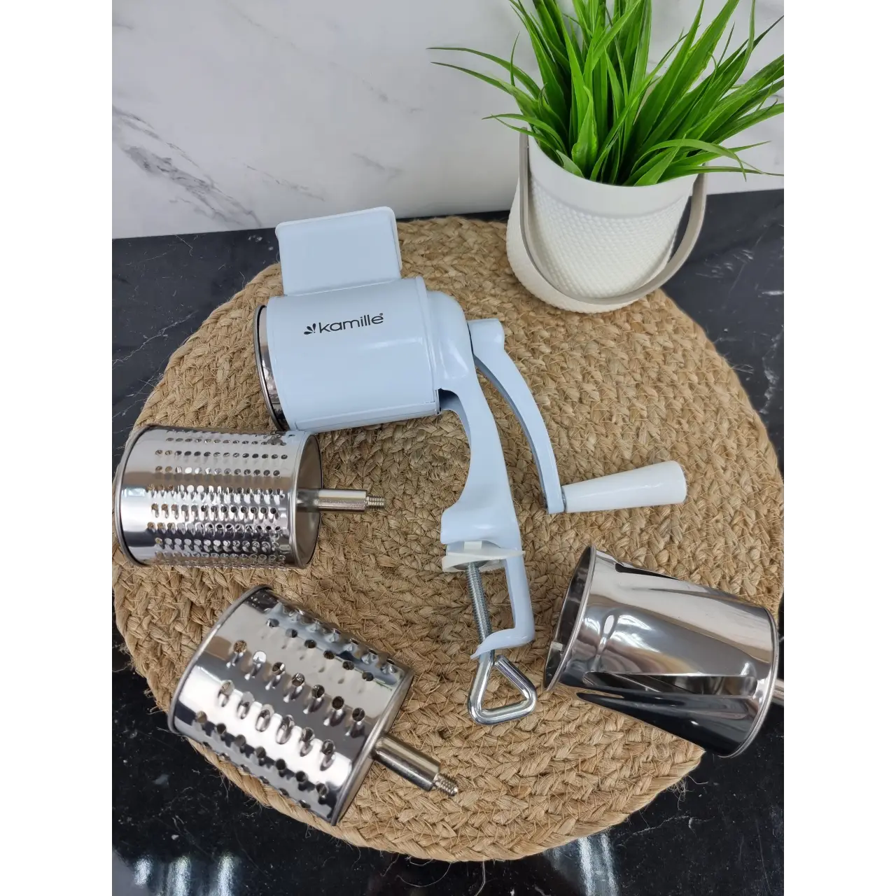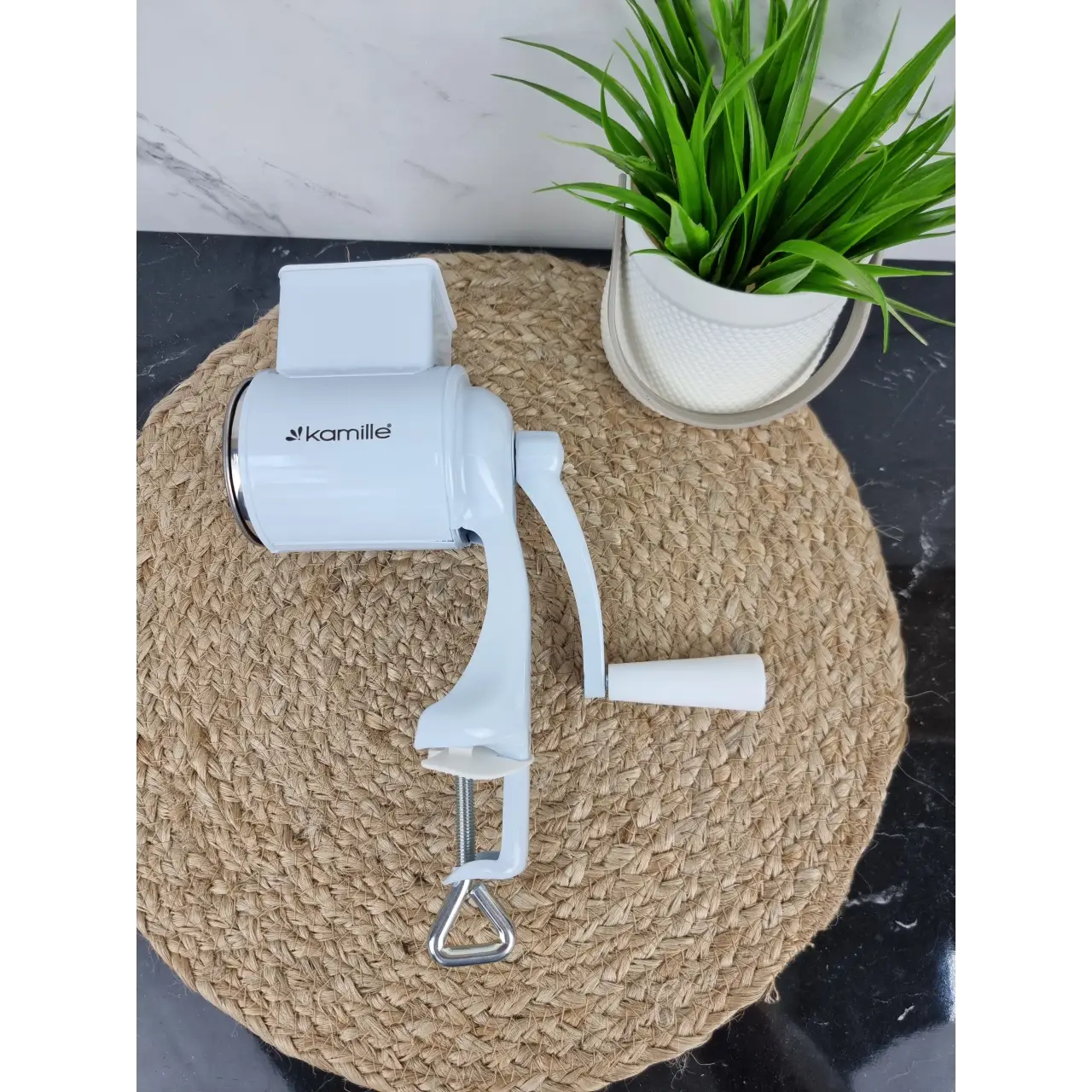 Універсальна механічна терка підходить для овочів, фруктів, сиру, шоколаду та інших інгредієнтів. Металевий корпус забезпечує міцність і довговічність, а компактний розмір дає змогу зручно зберігати терку на будь-якій кухні.