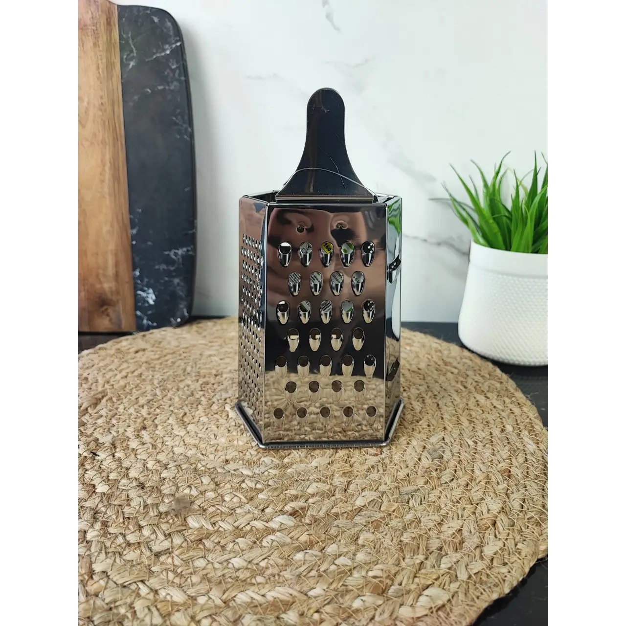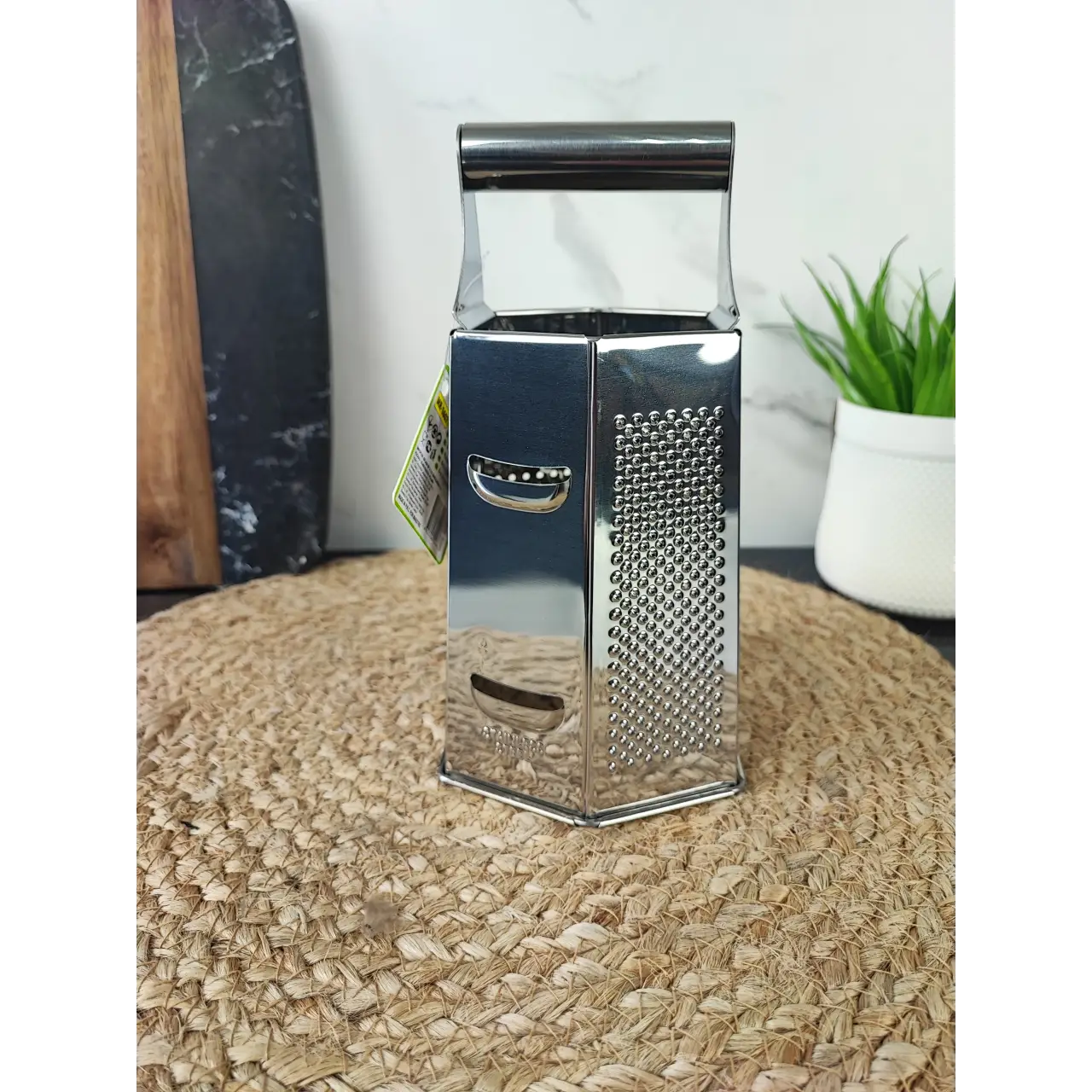 6-стороння терка MR-1607 — універсальний кухонний інструмент для нарізки та подрібнення різних продуктів. Леза виготовлені з нержавної сталі, а шість сторін терки забезпечують багато способів використання. Розмір терки 20 × 10 × 12 см, що робить її зручною та практичною для роботи на кухні.