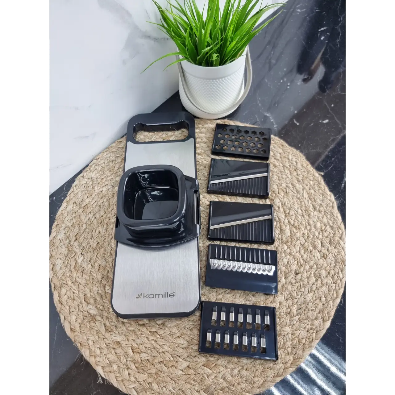 Мультислайсер Kamille KM-3005 — це практичний та надійний кухонний інструмент, який значно спрощує процес підготовки інгредієнтів. Завдяки гострим лезам із високоякісної нержавіючої сталі він дозволяє швидко, рівно та акуратно нарізати овочі, фрукти й інші продукти.