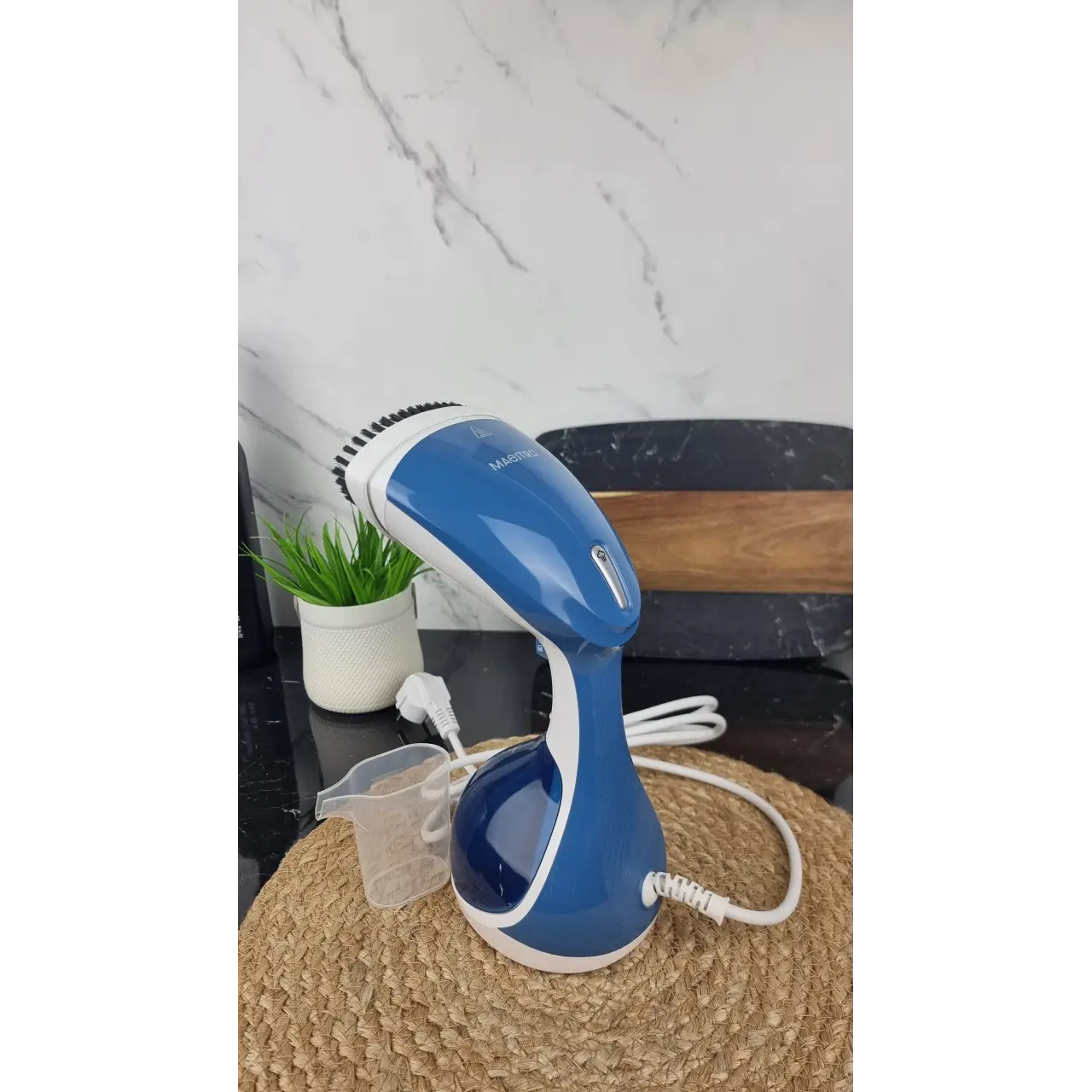 Парогенератор‑відпарювач Maestro MR‑355 Blue 1500 Вт – практичний пристрій для догляду за одягом і текстилем.